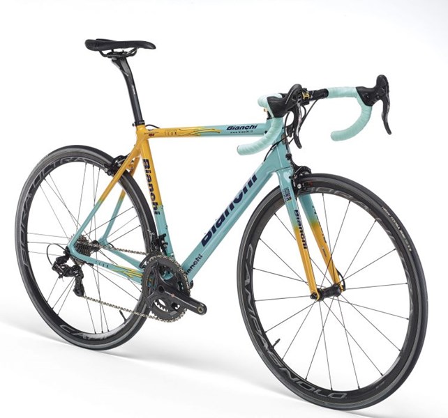 According to Bianchi, "Specialissima is a pinnacle of modern racing performance with its 780gr ultralight frame engineered with Countervail vibration cancelling technology. It is the ideal bike for climbers and mountain lovers: a bike worthy to pay tribute to Pantani’s extraordinary feat and lasting legacy".