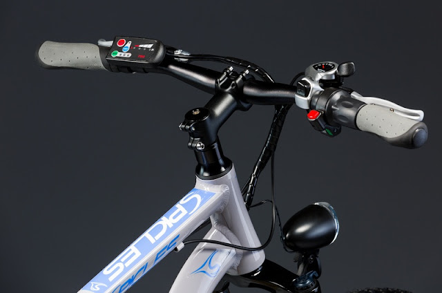 It is mounted with adjustable suspension fork to add comfort to driving. The Biggest incorporates the brushless motor 8FUN / Bafang 250W in the rear hub, with intelligent LCD controller and Samsung Lithium batteries with a standard size for easy replacement.