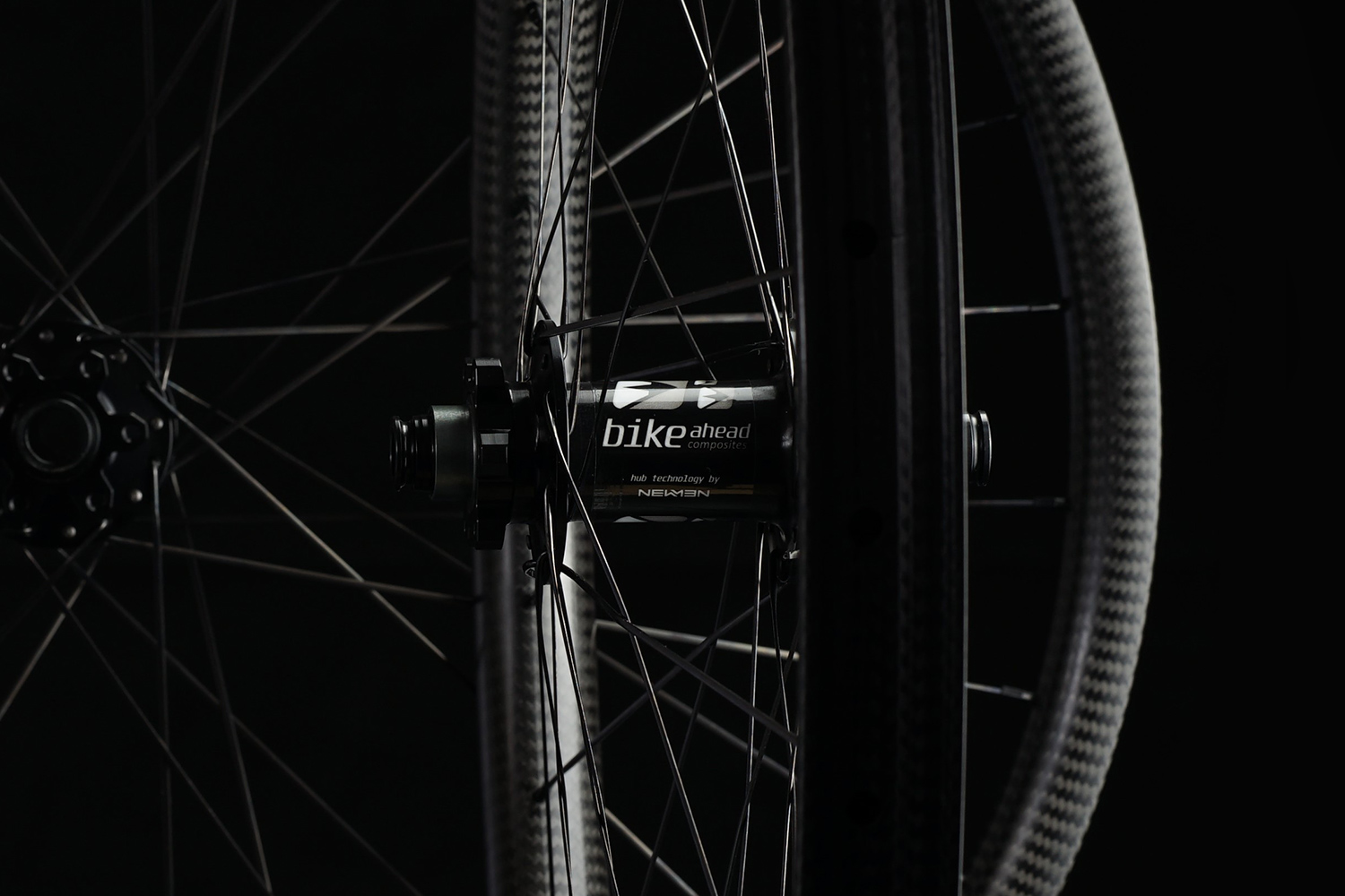 Bike Ahead Composites (Germany) – The carbon rim THErim has been intensively developed, paired with special hubs of NEWMEN®, and connected by spokes, as well as aluminum Prolock nipples from the Swiss manufacturer DT Swiss®. This resulted in a more aggressive and loyal companion for the trail and cross country use. The used wheel design has its robust lightness, obtained as a result of a massive rim flange and hookless clincher. With this package Bike Ahead Composites achieve top rigidity values but and a top weight from 1359g.
