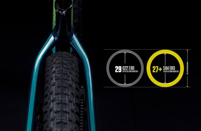 Double Duty packs two bikes into one platform. Choose between 27+ and 29 wheel sizes in the same frame. 27+ tires are wider than traditional tires and are much higher volume, meaning they can be run at lower pressures. This allows Plus tires to go where regular tires can’t, easily handling light mud and snow or sand, greatly expanding the terrain the riders can cover.