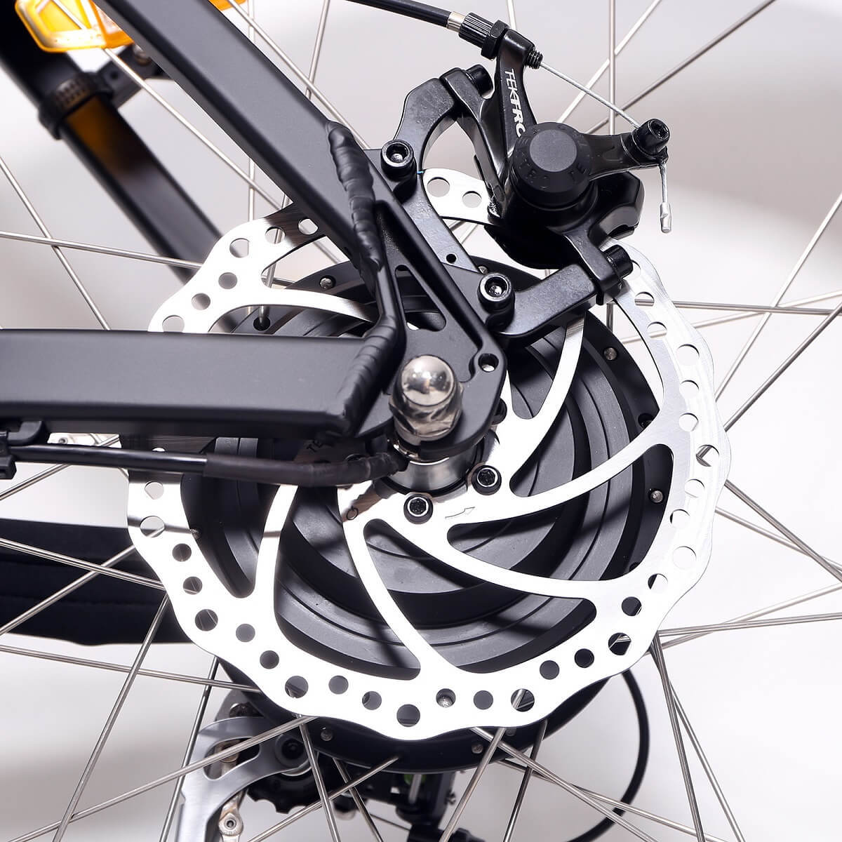 - Brakes: Tektro - 180mm disc rotor, cable operated with alloy levers featuring integrated power cut outs