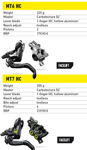 From autumn 2017 on, Magura will sell the MT6 and MT7 with the 1-finger-lever HC. "The HC allows great modulation, power control and is adjustable in many ways. Reach adjust and bite adjust (MT7) can be regulated without even touching a tool. Just turn the onboard controls and the lever comes closer to the handlebar", they added.