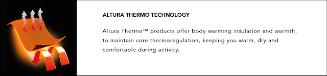 - Altura Thermo™ technology using thermosuede fabrics delivers body warming insulation and warmth, to maintain core thermoregulation, keeping you warm, dry and comfortable