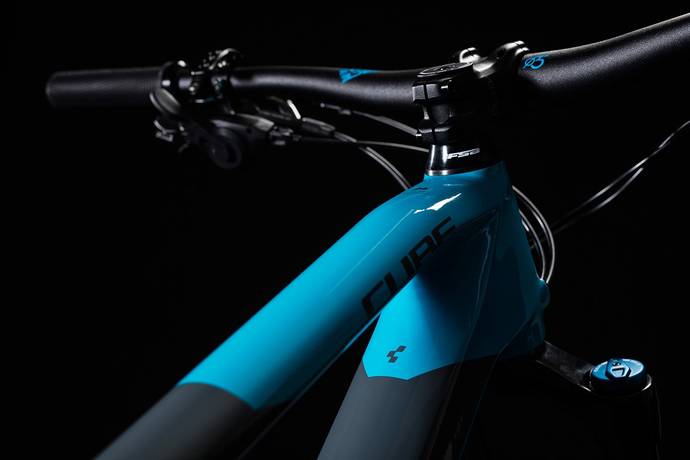 "Cube's engineers love a challenge. So when we told them they had to make the new Stereo 140 even better looking and even better handling, they set to it with a vengeance. The result is one of our most stunning frames yet - a blend of carbon main frame and aluminium rear triangle that's so elegant, you won't believe it offers 140mm of rear wheel travel. Hidden frame pivots, internal cable routing, a shorter rocker and a trunnion mount shock all contribute to the clean looks. But we've not forgotten function, either. The Boost 148 rear end, combined with the massive down tube and tapered head tube all contribute to a super-efficient, super-accurate chassis that goes where you point it, every single time. Short chainstays and a low standover are part of the agile handling, and the geometry is designed to handle both a 150mm fork and extended periods of climbing with ease", concluded Cube about the new Stero.