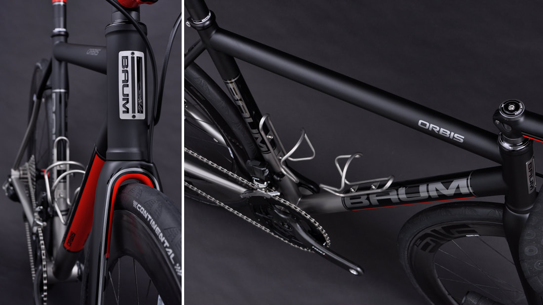 "A maximum measured tyre size of 34mm takes the plush ride that comes with a Orbis R to new levels of compliance. Increased bottom bracket drop ensures handling is not only everything you expect from a Baum but it is also tuned so that you can take advantage of the exceptional grip and cornering that the wider profile the tyres offer. Formed chainstays (for tyre clearance), a T47 bottom bracket and a tweaked stand-over height geometry (due to increased wheel radius) are just some of the features of the Orbis", they added.