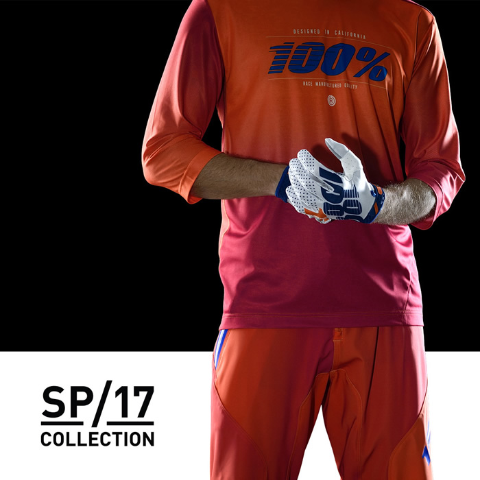 The Spring 2017 lineup builds on the initial offering of technical riding apparel introduced this past fall. New designs and colorways are now available in 100% R-Core downhill gear: