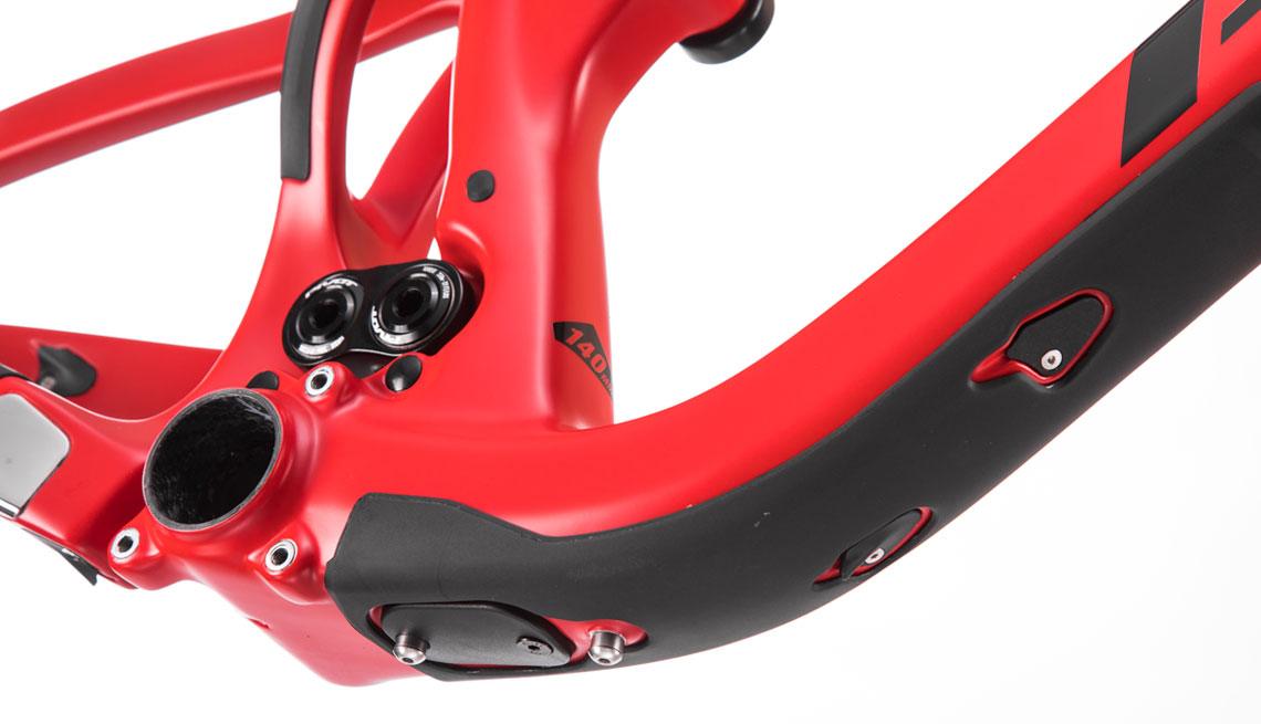 Featured on the Mach 5.5 Carbon is Pivot’s ultra-clean, removable front derailleur mount. For riders that want to run two chainrings, this precisely engineered mount offers the best shifting performance you can get, utilizing Shimano’s new side-swing front derailleur system. For those who love the simple functionality of 1x systems, the removable front derailleur mount offers an incredibly sleek, clean installation with almost no evidence of the un-needed hardware.