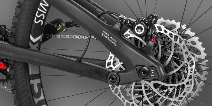 Chainstay made of carbon for lower weight as well as increased side stiffness and with MDI III for individual riding dynamics adjustments.