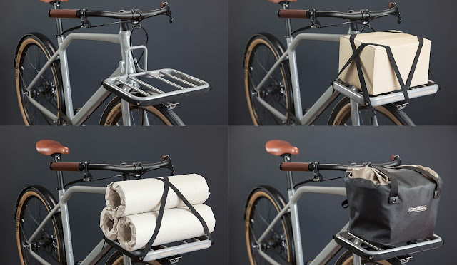 "Fixed to the head tube, the front rack does not move while steering. Gustav rides smooth and safe, even when loaded heavily. Be it a pick nick blanket or a parcel, your load will be fixed tightly with the flexible strap system that we developed for this bike. Even cobblestones or rough paths will become new favourite shortcuts thanks to the comfy large volume tyres", continues the company.
