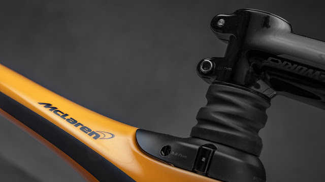 "And while we acknowledge that it would be hard to pay homage to a lineage of race cars through a bike design, this Roubaix counters this challenge by capturing as many details from the cars as possible. This means that the head badge is polished to a brilliant shine, while its custom Roval CLX 32 wheels spin on sparkling polished hubs that mimic the silver wheels found on the McLaren race cars of yesteryear. We spared no expense with this bike, so it perfectly reflects the luxurious attention to detail that both McLaren and Specialized are known for", they concluded.