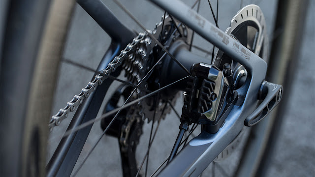 Aside from the direct mount hanger and in cooperation with our road bike team, we have designed dropouts that allow the rear wheel to be easily guided into the dropout recess. The hub first contact the slanted (front) part of the recess and by lifting up the wheel, it goes into its final position.