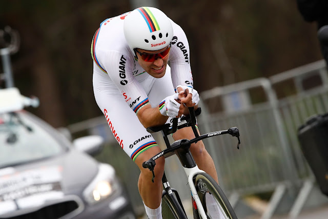 The last rider off the ramp, the individual world time trial champion set the fastest time at the intermediate time check with six minutes and 17 seconds, finally stopping the clock after his 9.7 kilometre effort with a time of 12 minutes and two seconds. His victory means he takes the first Maglia Rosa of the 2018 Giro d’Italia.