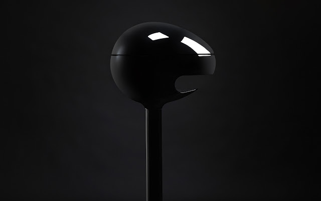 "Inspired by Pop Art, the egg-shaped misterious case mirrors in the base and its glossy black finish adds a twist of magic to its fluid lines", they concluded.
