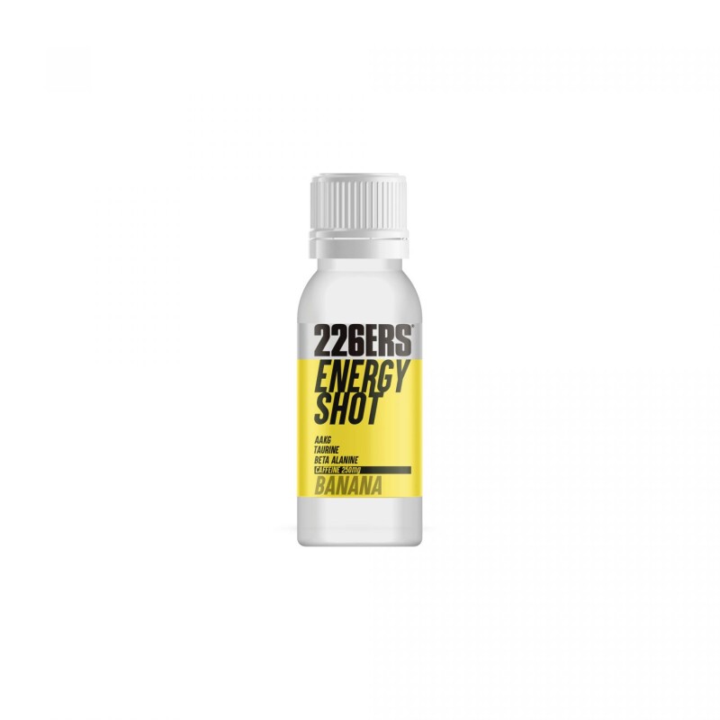 ENERGY SHOT is an energy product in a 60ml vial with banana flavor suitable for vegans, gluten-free and without added sugars or sweeteners.