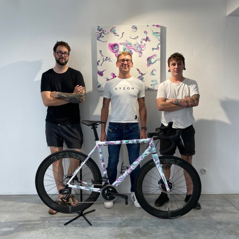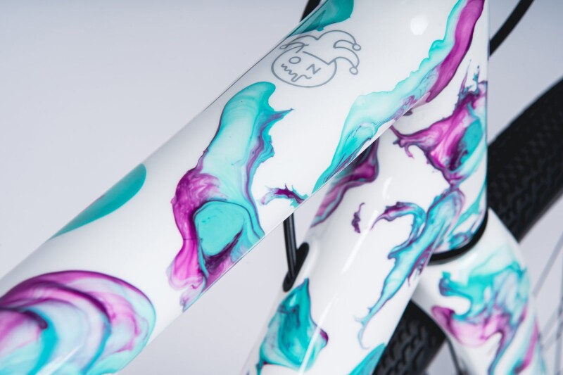 Festka (Czechia) - Press Release: Our collab with the artists Ondrash & Kasparek presented last November attracted a lot of attention. The tandem composed of a renowned tattoo artist and a clever tinker had recently invented an original technique for creating stunning abstract works by painting on the surface of the water and transferring the creations onto canvas. Applying the technique to a 3D object such as a bike frame was a big challenge but challenges are what these guys love.