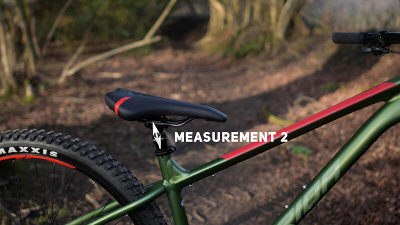 With the current seat post at the maximum riding height, measure from the saddle rails to the top of the frame where the seat post is clamped. This is measurement 1.