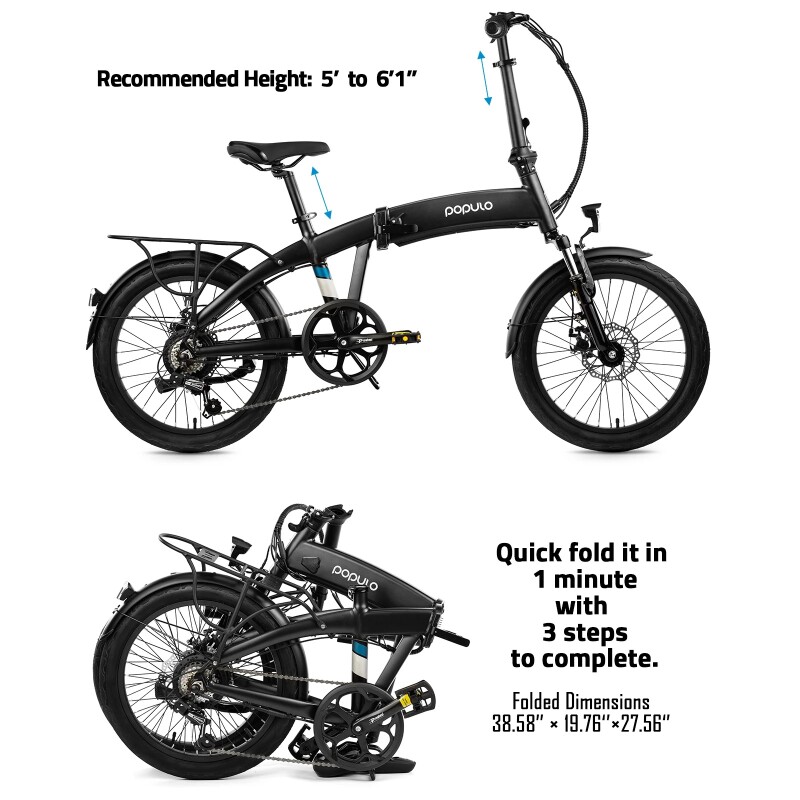 - GET STARTED QUICKLY: Populo Curve e-bike comes pre-assembled so you won't have to spend your time with the complicated assembly. Quick three step unfold/fold for easy storage. (The package contains an instruction manual and an assembly video is also available from our website."A great e-bike, easy to assemble and fun to ride!"