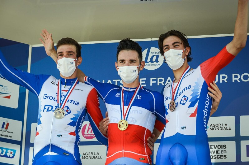 FDJ Cycling Team (France) - Press Release: On Thursday, June 17, the Groupama-FDJ cycling team experienced one of the greatest days of its long history. In the 2021 French time trial championship, Marc Madiot’s riders clearly dominated the competition and actually monopolized all podium spots! Two years after his first title, Benjamin Thomas took the jersey back while Bruno Armirail and Alexys Brunel won the silver and bronze medals respectively. A perfect day, simple as that.