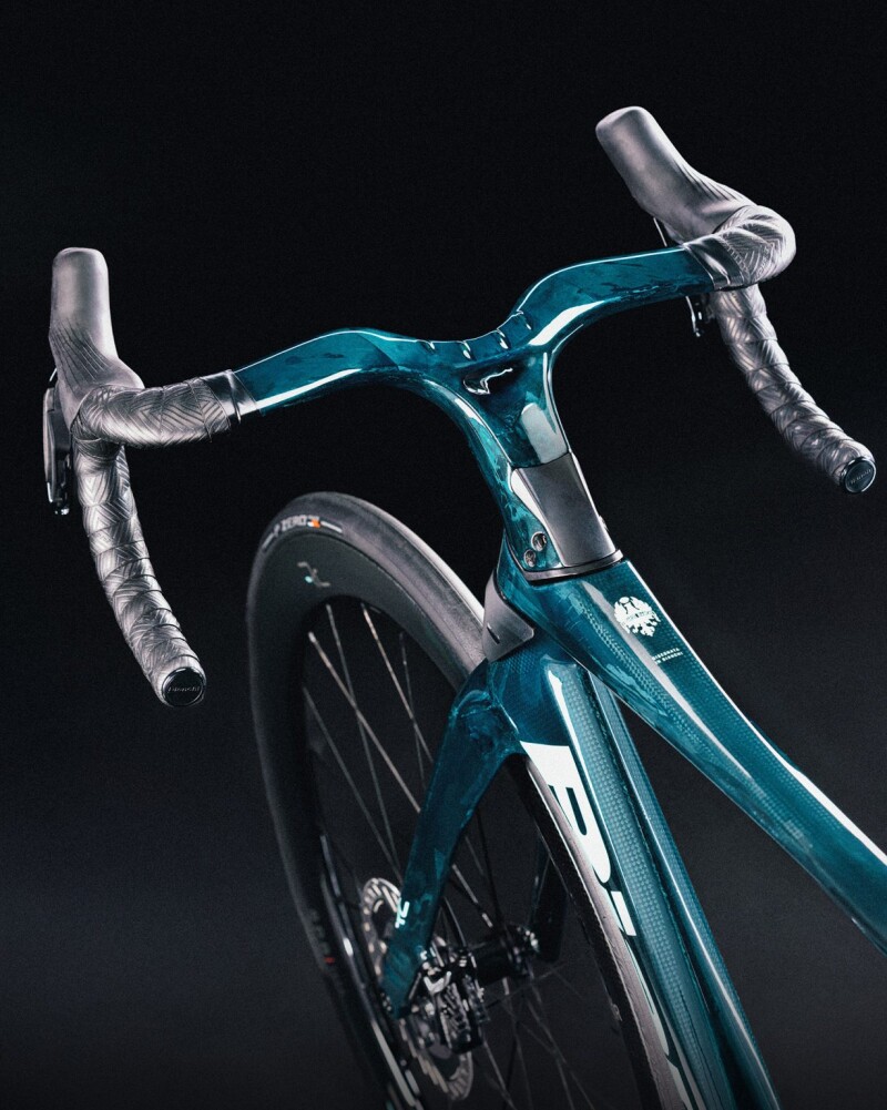Inspired by precious amethyst gems, the finish presents as a shifting petroleum green with mesmerizing aquamarine highlights. This distinctive aesthetic extends beyond the frame to include the handlebars and seatpost and adds an extra layer of refinement to both models.