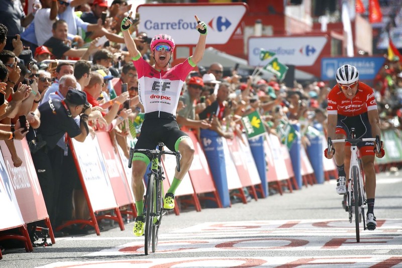 Cannondale-Drapac Pro Cycling Team (Spain) - Simon Clarke added a second Vuelta a España stage victory to his palamares in Roquetas de Mar on Wednesday. The Australian perfectly played a three-up sprint on stage five to deliver the win for EF Education First – Drapac p/b Cannondale.