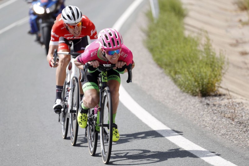 Clarke and Bauke Mollema (Trek-Segafredo) accelerated away on the descent leading up to Alto El Marchal, the stage’s final climb. They had 1’30 and Alessandro De Marchi (BMC) for company by the time they reached the foot of the climb.