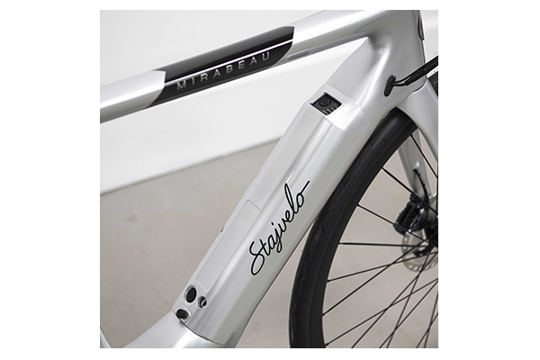 Stajvelo (Monaco) - The Mirabeau is an electric version of the Beau Rivage. It shares the same top-of-the-range technical features, has a carbon frame (T800 UD), DT Swiss HE (Hybrid Endurance) wheels and a Shimano Ultegra Di2 disc groupset. The Mirabeau is equipped with the Polini EP3 motor which produces a torque of up to 70 Nm. The Mirabeau boasts an attractive autonomy of 150 km, for genuine riding pleasure and a bike capable of taking you over the highest alpine passes whatever your physical condition. With this new electrically assisted road bike you can venture to previously inaccessible places, places you have never been, or return on your bike simply for pleasure. The power assistance will not take the joy out of your ride; on the contrary, it will make it all the more satisfying by leaving only pleasure.
