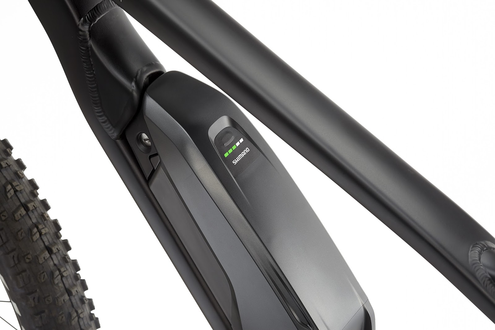 Battery: the intelligent integration. Removing, replacing and recharging the battery off the bike are basic demands. Creatively integrated into the frame, easy to disassemble, the SHIMANO battery currently gives the greatest range on the market (up to 100 km in “Eco” mode with 800m of positive elevation).