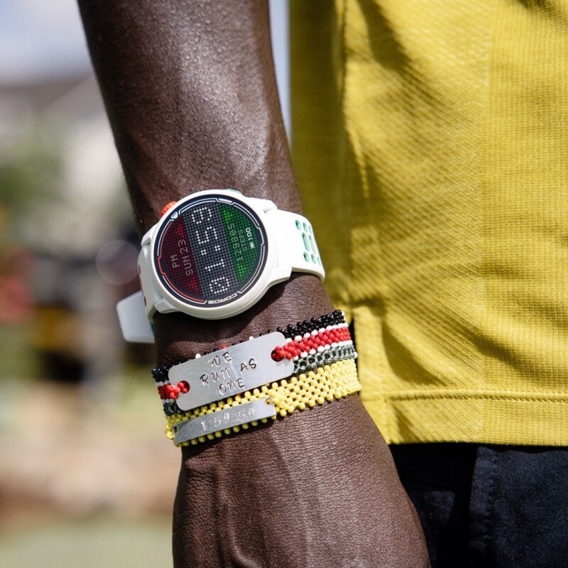 The EK PACE 2 watch features a white body on our award-winning PACE 2 model, with hints of Red and Green inspired by the national colors of Eliud’s native Kenya. These colors are seen on the watch’s buttons as well as the trim of the watchband. The watch package will also include two watch bands - one silicone and one nylon, so you can switch things up based on your own preference. Lastly, because Eliud gets such great use out of the advanced running metrics from COROS POD, this additional product is bundled together with the EK Signature PACE 2. Now you can get the maximum data from your runs, and train using the same data used by Eliud and his technical team. The EK PACE 2 is available in 5000 units globally only.