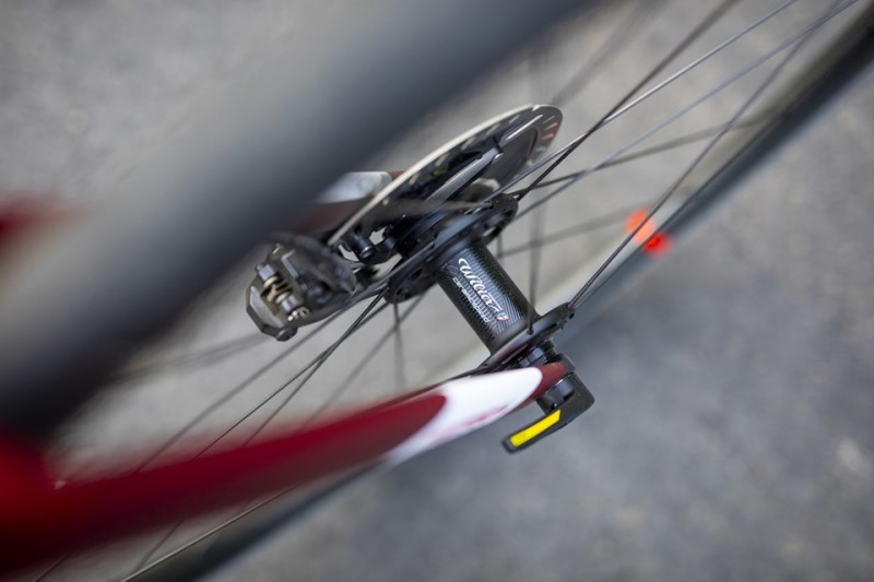 Another new feature is the Mavic Speed Release thru axle system that enbles the wheel to be quickly removed from the frame. In this way the axle does not need to be totally extracted from the wheel hub. This solution significantly reduces wheel release and insertion time. During races, this solution cuts wheel change times by 7 seconds on average compared to a traditional thru axle system. We also chose the Speed Release thru axle to reduce weight (only 85 grams per pair) and safeguard the integrity of the frame.