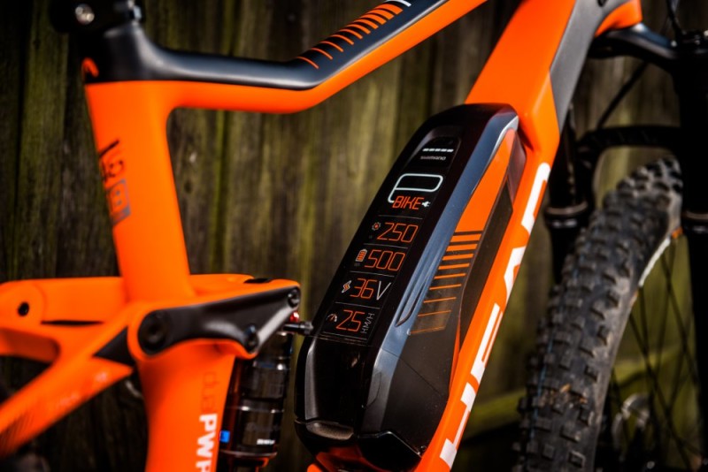 Head Bikes (Czechia) - Muret is a full suspension carbon bicycle with 120 mm travel of front fork and 100mm travel in the rear. Head Bikes have equipped it with Shimano Steps e8000 motor and the battery is mounted on the down tube frame.
