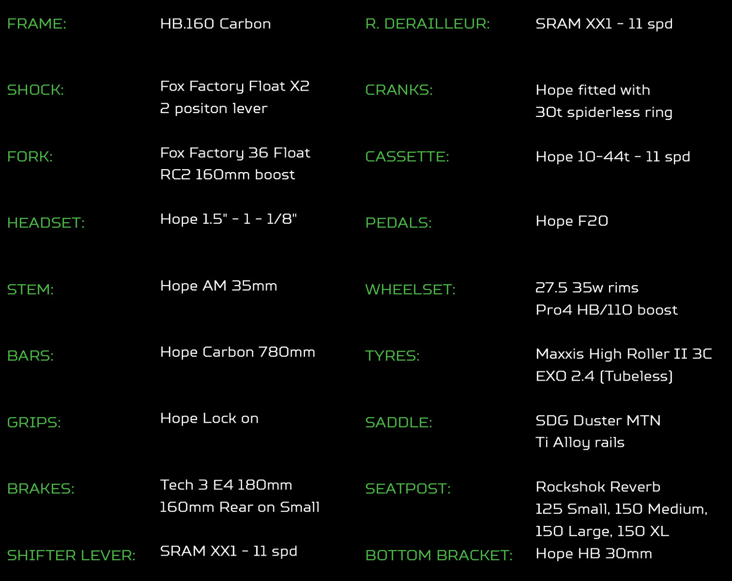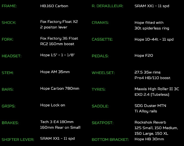 "Although we didn’t really want to create new standards on this project we felt it was important as we have seen compromises bike manufacturers have made when designing frames and also the restrictions on component manufacturers to conform to standards. Very few companies have previously been able to combine the needs of the frame and component designer into one project. With this unique opportunity, we set about creating our idea of the perfect bike - without compromise. Our bike designs have gone through a big evolution over the years, changing as our current bike requirements have changed as well as the evolution in wheel sizes and the disappearance of the front mech", shared Hope Technology about the new HB.160.