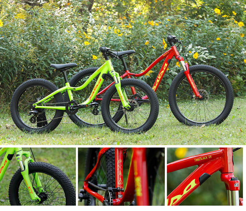One year into our first foray into the Kids bike arena, our Timberjack 20 and 24 with rigid forks return. Those forks allow kids to carry extra water bottles, help haul gear on family outings, or just carry empty containers for collecting bugs, rocks, leaves or whatever catches their fancy. But we’re also psyched to add Timberjack 20 SUS and Timberjack 24 SUS to the lineup. Sporting front suspension forks, these are destined for little rippers everywhere working on learning the ropes of mountain biking.