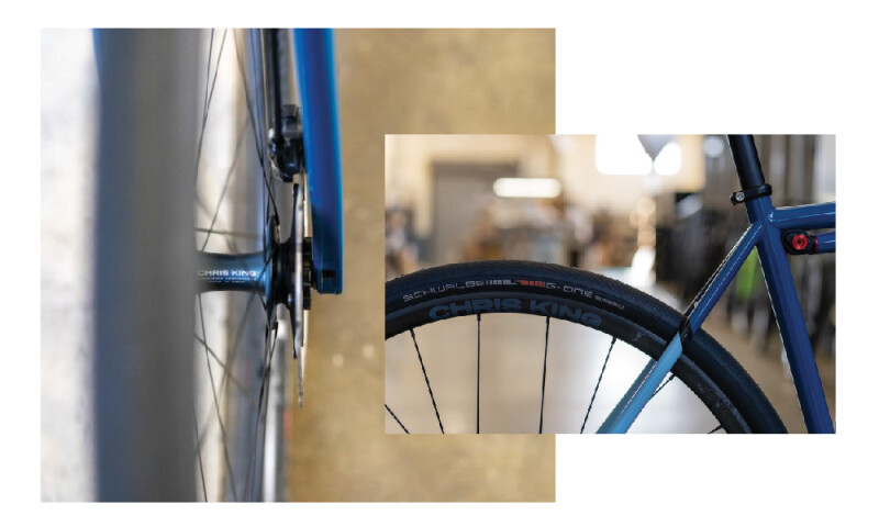 This bike has all the best of both the Lolo and the B-Road: a full Columbus Life tubeset and a larger 35mm Life downtube to give the bike more snap. We also designed around the slightly shorter Enve AR fork to allow for tires up to 35mm with a fender or 38mm without. The narrower clearance and tighter geometry helps the bike carve and sprint like the Lolo, and the bigger tires are ideal for rougher roads.
