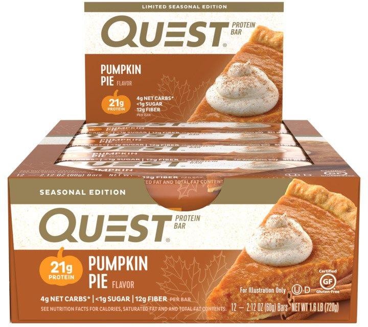 Quest Nutrition (United States) - Quest Pumpkin Pie bars come with a delicious pumpkin base mixed in with warm spices… Like a slice of pumpkin pie, but with a fraction of the carbs and sugar.