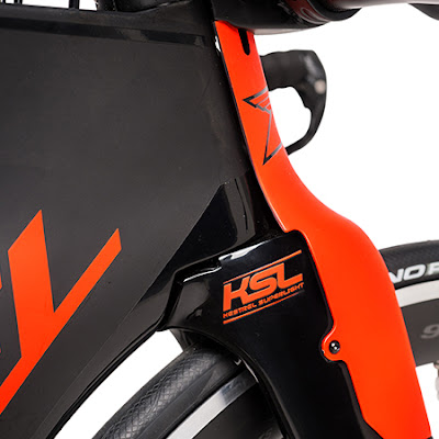 Rear chainstay brake is enclosed in fairing to reduce turbulent air under the BB shell.