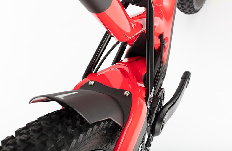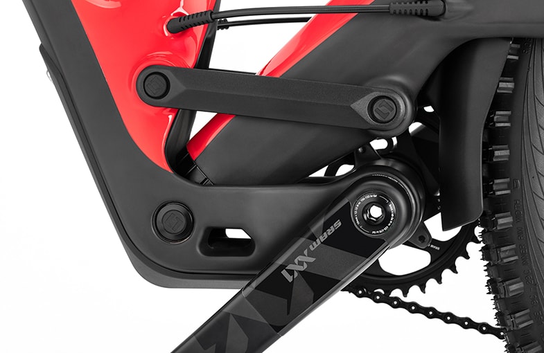 Naild’s R3ACT – 2 Play system has unique core kinematics which manage the inertia of acceleration loads. The system does not require platform/lockouts from external devices on any travel applications, even the 160mm travel of the Wolf Ridge. A custom kinematic was developed with Naild to ensure that the Wolf Ridge would have the pedaling prowess previously unattainable in a long travel bike.