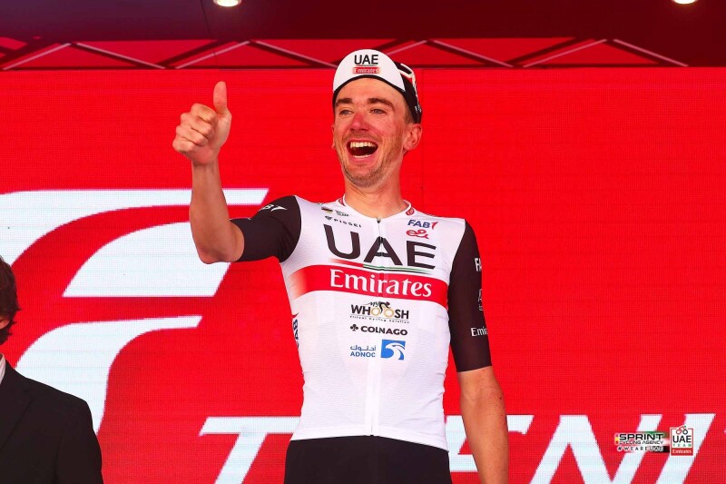 McNulty was able to respond to all the attacks thrown at him by Healy and timed his sprint to perfection on the downhill road to Bergamo to take the 27th win of the season for UAE Team Emirates.