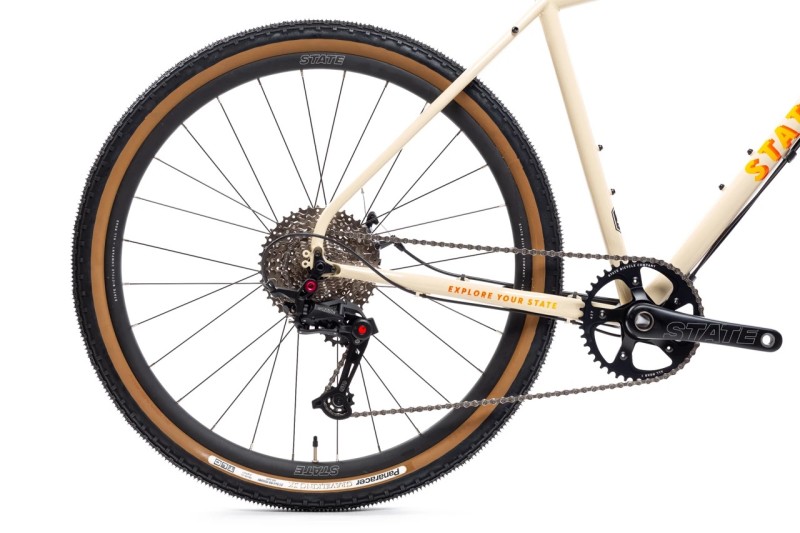 The 4130 All-Road comes standard with a rider’s choice of tubeless-compatible 700c wheels with 38mm tires OR 650b with 1.9” tires. State chose the Panaracer Gravel King (a gold-standard in gravel/all-road tires) for both size options.
