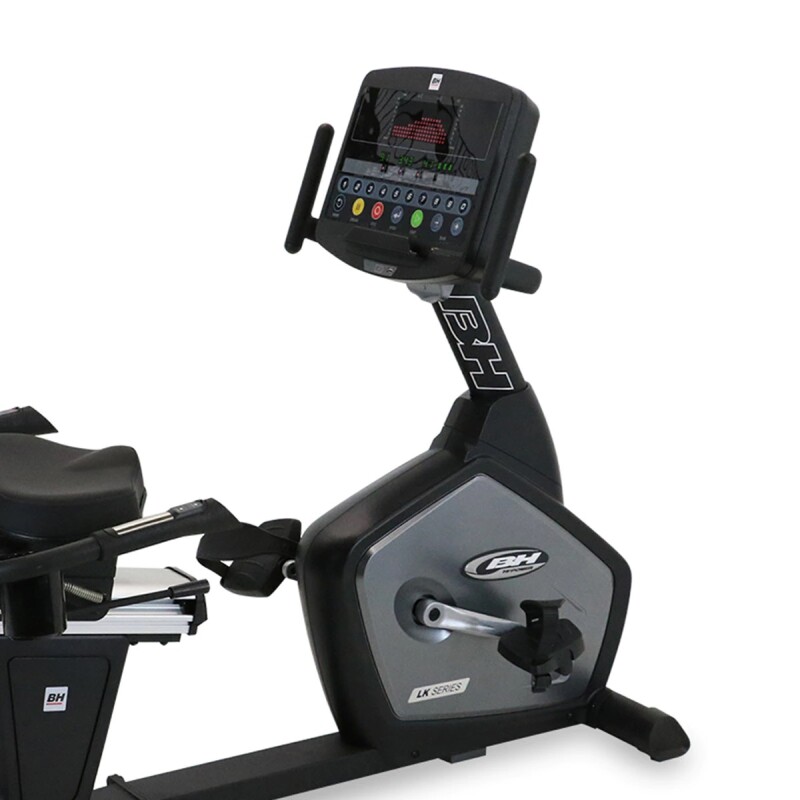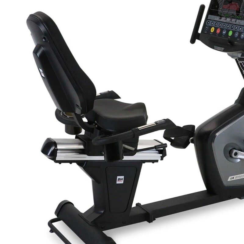 BH Fitness Bicicleta reclinada Profesional LK700R Core BH Fitness. El mayor confort en el pedaleo está asegurado con esta bicicleta con respaldo que te transportará directamente al gimnasio. Con gran estudio biomecánico que la hace idónea para cualquier tipo de persona. Ofrece un paso abierto entre manillar y asiento que facilita el acceso a personas con movilidad reducida. 16 niveles de resistencia. Controla tu pulso mientras te ejercitas, ya sea con tu pulsómetro o con los lectores de ritmo cardiaco que incorpora en los agarres laterales. Máquina autogenerada (no necesita conexión eléctrica). Factor Q más reducido para evitar problemas de rodilla. Significa que los pedales están más cerca uno del otro.Los pedales, sobredimensionados, ofrecen total seguridad en el pedaleo. Sistema de ajuste de pedales intuitivo y más seguro. Sistema de transmisión por correa Poly-V, para mayor durabilidad de los elementos y cero ruido durante el ejercicio. Asiento lumbar con estudio ergonómico y realizado en material más confortable. Ajuste del asiento en profundidad. Monitor LED extra intuitivo de utilizar. Cuenta con botones grandes y en color para facilitar el uso a cualquier tipo de usuario. Se puede trabajar en perfiles predeterminados o en programas manuales. Se puede ajustar la resistencia desde los agarres laterales o desde el mismo monitor. Diseño vanguardista. Carcasas pintadas en ABS (tecnología de pintura para automóviles). Porta botellín integrado.Cambio de la resistencia directamente en botones de los agarres laterales. Nota importante:La banda de pecho, así como los smartphones y otros dispositivos no van incluidos, se venden por separado.