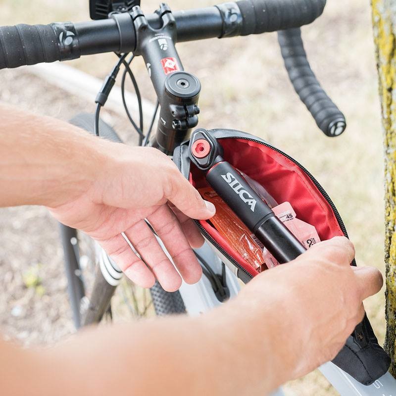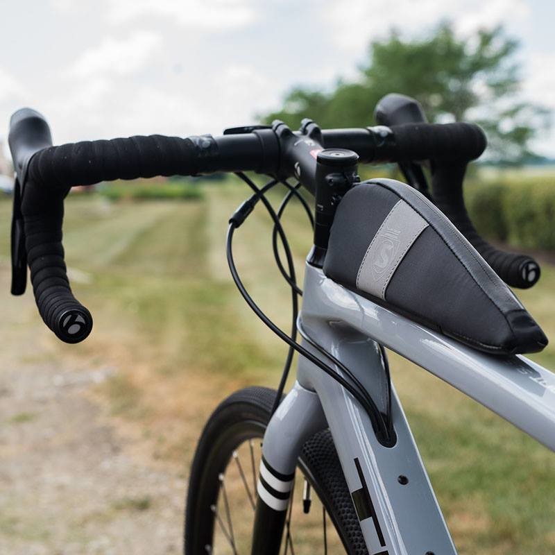 Silca (United States) - Speed Capsule TT is Silca's take on the direct mount bag for a top tube, down tube or anywhere else you can mount a storage pack. The key benefit of Speed Capsule TT is its rigidity, which allows the rider to more easily open and close the pack while riding. Many bags in this category lack a stable internal structure which leaves them prone to buckling as the rider is trying to access the contents. Not only is it annoying when this happens, but it also takes the rider's focus away from the road. The base of the Speed Capsule TT is a PE board that runs the length of the bag.