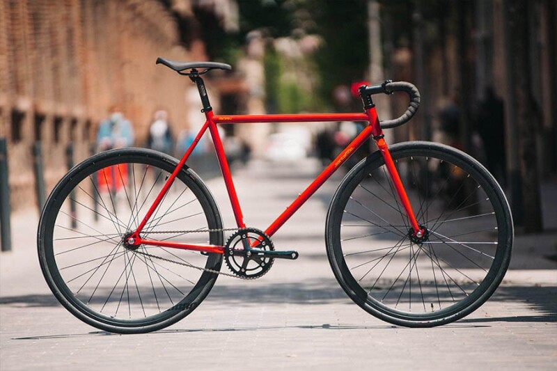 Firstly, there’s the Santafixie Born Urban, available in 3 finishes (Blackout, Red Garnet and Racing Green) and 3 sizes (52, 55 and 58). It’s a more urban version, with Chaoyang Mini-Shark 700×28 tyres, two handlebar options (riser and dropbar), a 46×16 gear setup and an Essax Maigmo Evo saddle.