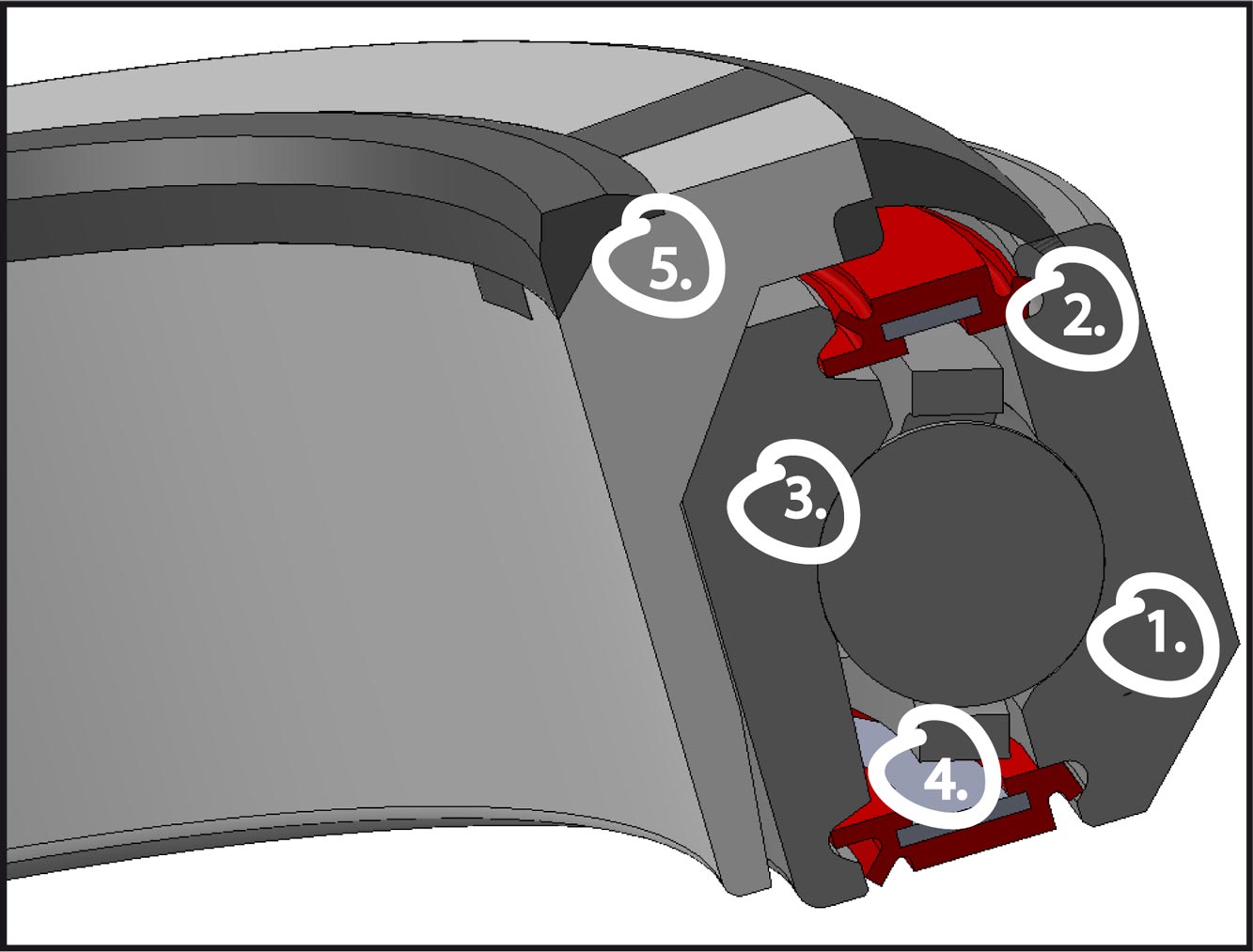 V-LIP:In addition to the new vulcanized seal on the compression ring and the base plate, the sealing discs of the bearings now have a special v-groove double split lip (V-LIP). Furthermore, the V-LIP is recessed in a fine polished groove, which significantly increases the sealing effect once again.