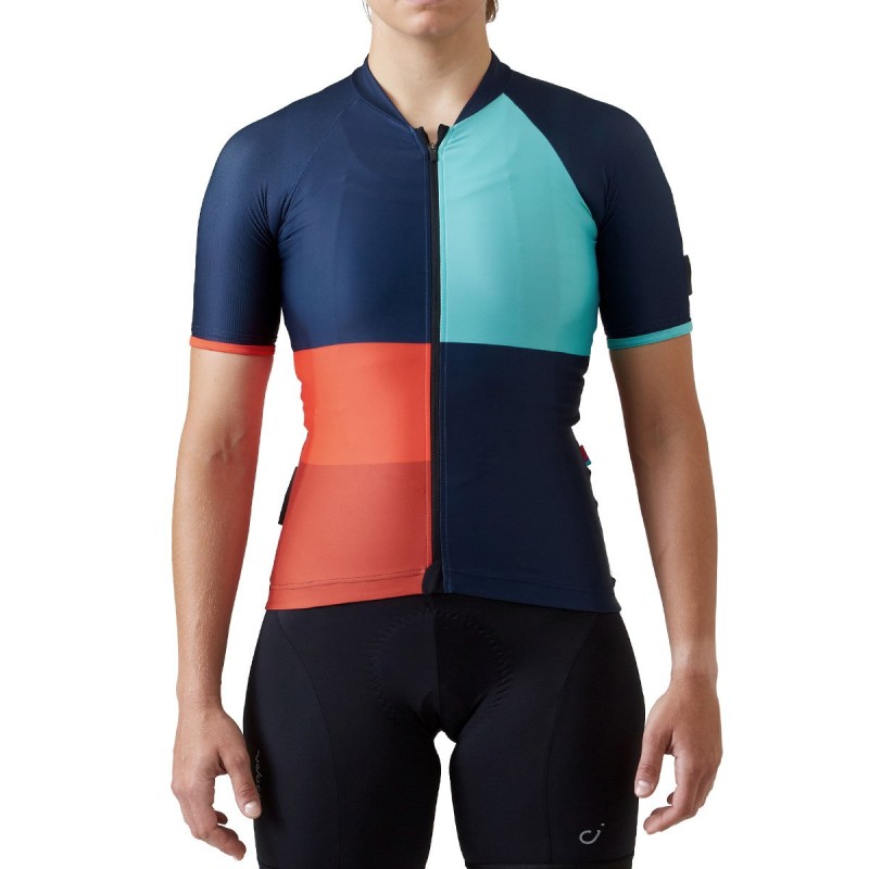 Velocio (United States) - With a form fit silhouette, the ES Jersey sports slightly longer sleeves made with Velocio's ultralight perforated stretch fabric, an artfully constructed piece aimed at high output riding without feeling overbuilt. The Multi print adapts a bold Mondrian-inspired design for a distinct look.