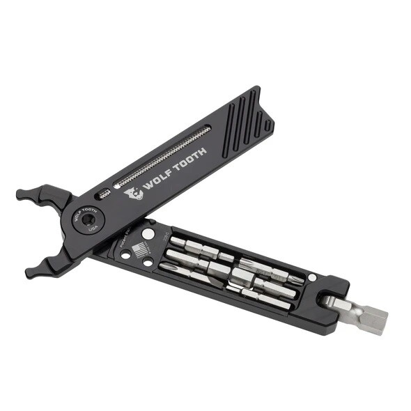 Wolf Tooth Components (United States) - The new 8-Bit Pack Pliers is a lightweight multi-tool with 17 functions. Eight attachments nest inside the handles of master link pliers using magnets and a clever storage system. These attachments then fit into an 8mm ball detent swivel head that has a 4mm opening for hex bits, which adds functionality to the already-versatile master link pliers. This new multi-tool was created to solve almost any minor repair on MTB and road rides alike