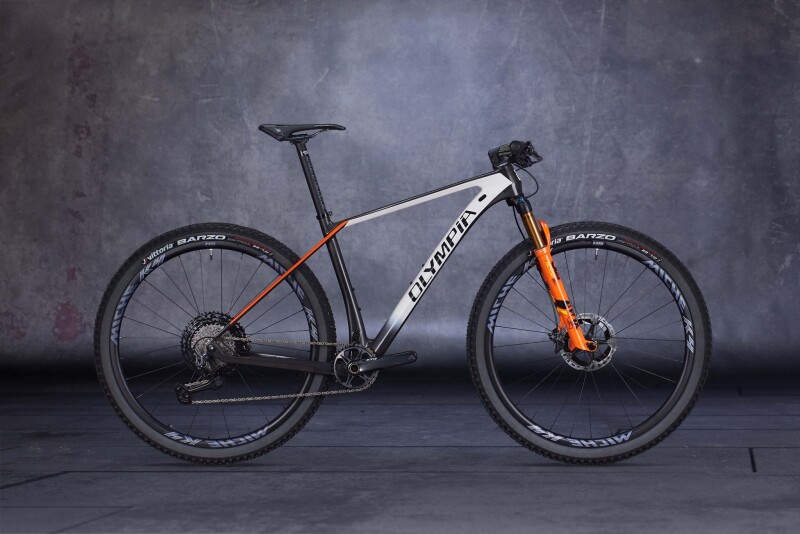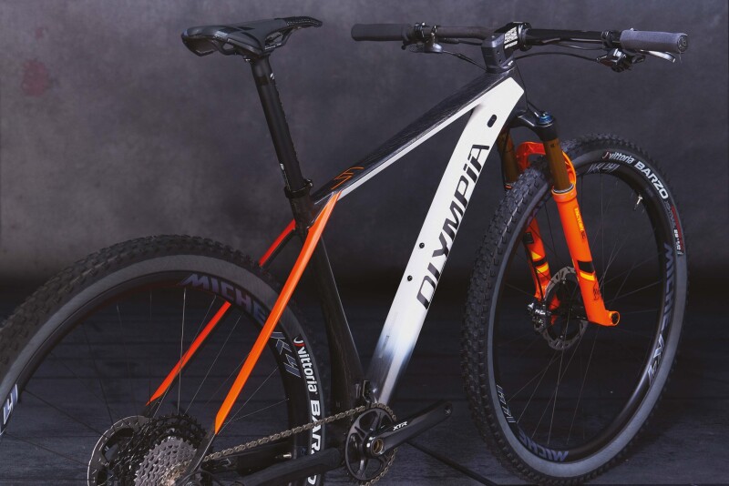 Olympia (Italy) - There are many new features in the 2021 version of F1, the iconic hardtail model by Cicli Olympia. The main one concerns its weight - considerably reduced thanks to a more streamlined design and the use of the EPS system in the construction of the monocoque Toray T1000, T800 and M40J carbon fibre frame. The geometries have been extensively redesigned to obtain a smoother riding feel and improve stability uphill and vehicle control downhill. In the size S, the bottom bracket has been raised to achieve a better bike balance. The 1.5/1.5-inch steering assembly is precise and rigid. The cable harnesses are integrated in the handlebars. The steering-fork assembly is highly compact. To increase comfort, the 430 rear stay has been flattened and the stays’ cross-sections have been reduced. Space requirements were taken into consideration to allow for tyres with a section of up to 2.35 and a drivetrain of up to 38.