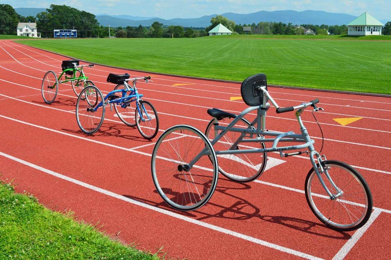 The RaceRunner running frame is made of aluminum and similar to a tricycle without pedals that supports the athlete as they move. Despite significant physical challenges, most athletes can propel themselves on the RaceRunner running frame considerably faster than they can move unassisted. The low center of gravity and frame design offers stability and poise while running or walking. The saddle unit counteracts lateral sway and can also be used as a seat when at rest. The RaceRunner running frame rolls so freely that even someone who is restricted to a wheelchair can propel themselves by their own efforts.