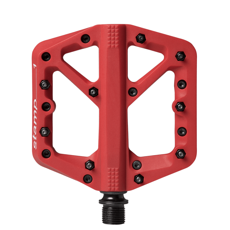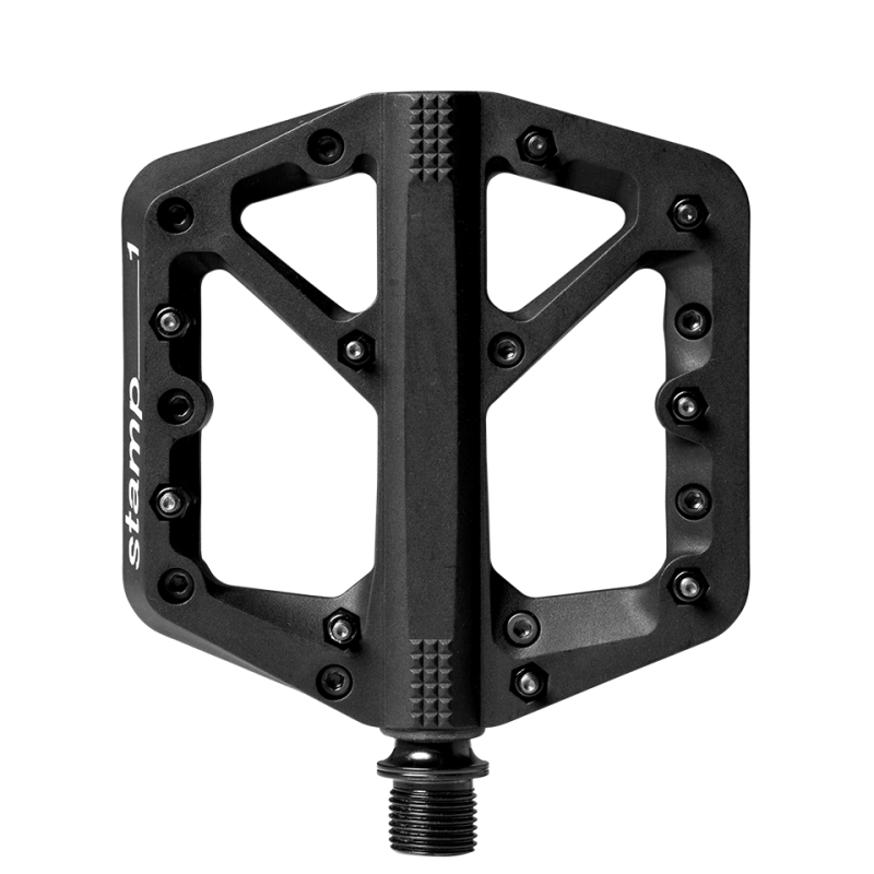 CrankBrothers (United States) - Available in two sizes with a composite body, premium internals, 10 back mounted pins for extra traction, and a 5-year warranty, the Stamp 1 pedal is perfect for days in the woods, trips to the city, and everything in-between.