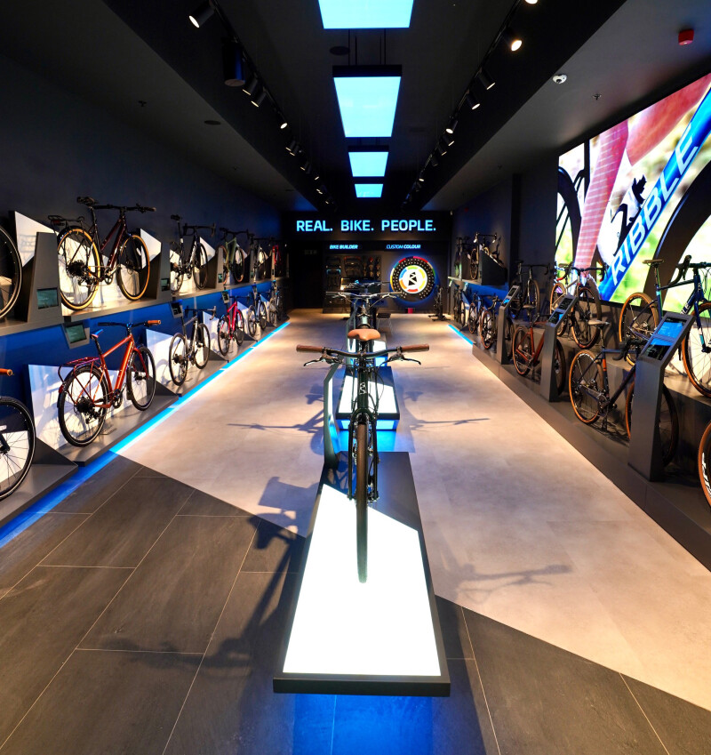 Stacey continues: “As a digital first business our new 1500sq ft showroom has been exquisitely designed to enhance the customers bike buying journey at every touchpoint. It will showcase more than 25 bikes from our award-winning product range and our class-leading digital based POS combined with interactive screens and video wall will offer a fully immersive experience. Customers have the ability to fully personalise and customise their bikes using our BikeBuilder and CustomColour tools – providing them with the scope to create a bespoke bike and riding experience aligned to their individual riding needs. Knowledgeable and passionate staff are on hand offering expert advice and to help customers through their decision making process. It is a very unique proposition and the team look forward to welcoming everyone to experience the Ribble brand first hand.”