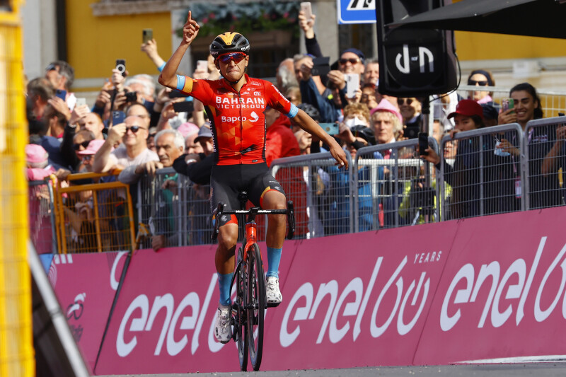 Team Bahrain Victorious (Italy) - Press Release: After his courageous effort on stage 15, Santiago Buitrago went in the breakaway again and this time tasted his first Grand Tour victory over the Monterovere, crossing the line in Lavarone solo.