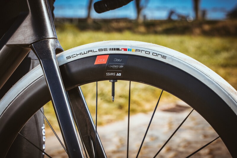 The basis for the Schwalbe x Spartacus comes from Schwalbe Pro One, the top-notch premium road tire of the Schwalbe product range. The Pro One is specifically designed for tubeless use and for maximum performance while pushing all the limits. The white base color makes it unique like Fabian, the three colored stripes in yellow, blue and red give it the personal touch, reflecting Fabian’s racing career.